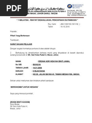 Pdf Contoh Surat Pengesahan Pelajar Dari Pusat Pengajian Amizal Abdul Razak Academia Edu